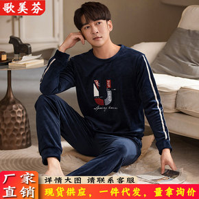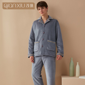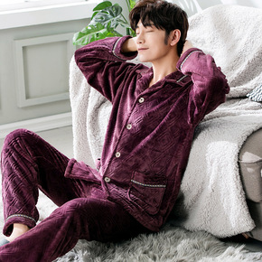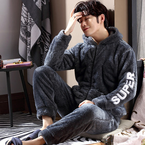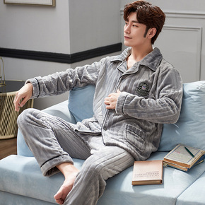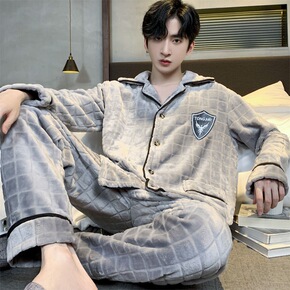 男士睡衣冬季加厚法兰绒可外秋冬加绒保暖珊瑚绒家居服...