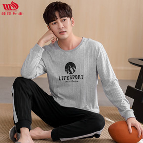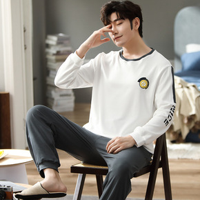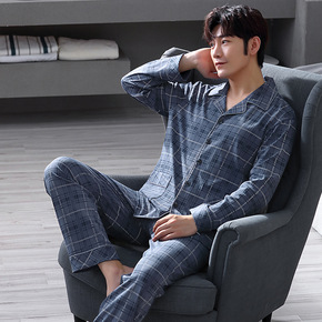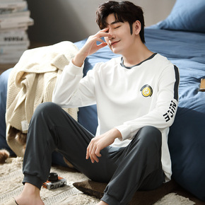 2021新款男士睡衣春秋全棉长袖套装休闲宽松大码纯...