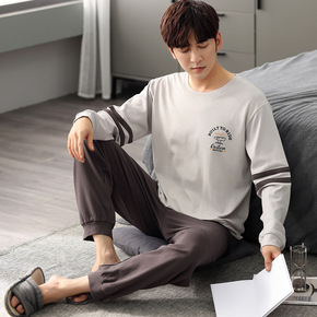睡衣男士春秋夏季纯棉长袖简约大码2021年新款全棉...