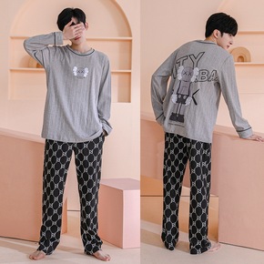 男士睡衣春秋季全棉韩版长袖套装卡通可爱学生青少年家...