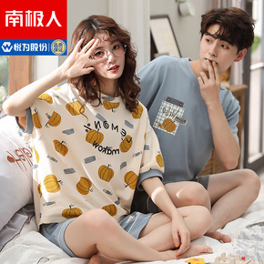 南极人情侣睡衣夏季纯棉薄款短袖可出门女睡裙休闲男家...