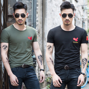 夏季国潮刺绣短袖T恤青年男士衣服棉宽松中国风圆领休...