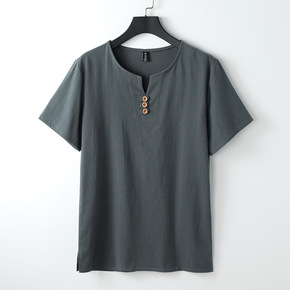 亚麻t恤男短袖夏季宽松中式棉麻半袖潮流中国风男装盘...