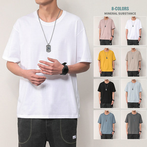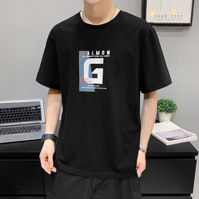 2021夏季短袖t恤宽松男装休闲T恤男士圆领休闲半...