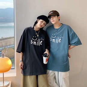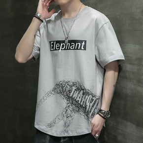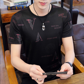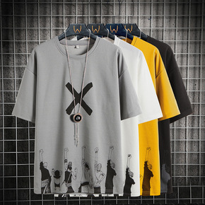 夏季新款青年男式圆领短袖T恤学生休闲港风文艺袖宽松...