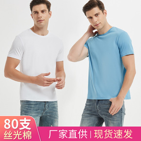 新8色80支双面丝光棉男式t恤白色短袖t恤男夏宽松...