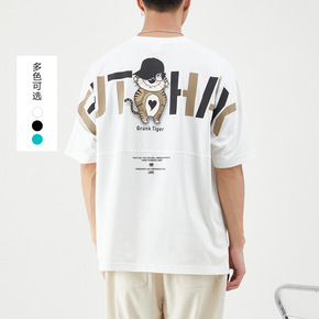 亦止男装港风潮流卡通涂鸦印花T恤男款2022夏季重...
