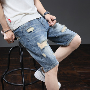 夏季男士牛仔短裤新款时尚休闲修身直筒弹力五分裤男装...