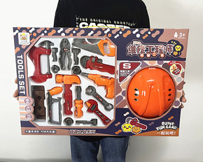 地摊热卖玩具儿童工具箱套装工具帽宝宝维修过家家仿真...