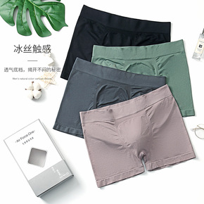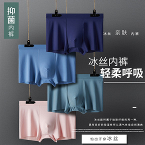 男士内裤平角冰丝无痕夏季透气抗菌裆托棉大码运动四角...