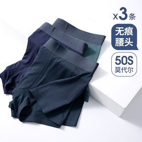 男士内裤莫代尔大码裤头无痕平角裤中腰纯色平脚短裤无...