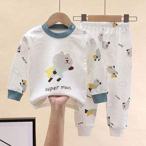 ins春秋新款儿童豹纹印花上衣卫衣长裤男女童两件套...