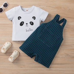 2022夏背带裤套装熊猫棉裤套装夏季现货童装牛仔两...