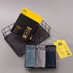 3条盒装魔磁裤夏季5D男士四角内裤轻薄透气舒适吸湿...