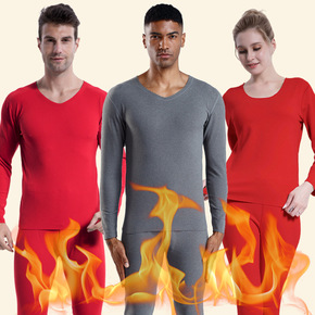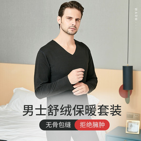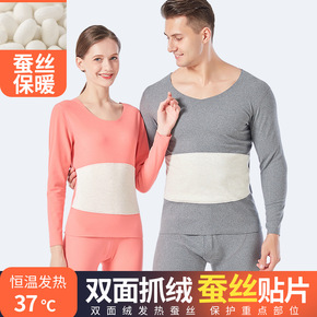 新款蚕丝贴片德绒保暖内衣女套装秋冬无痕发热棉毛衫男...