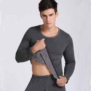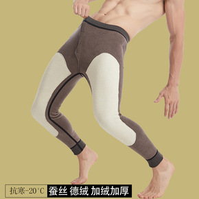 秋冬男士双面德绒羊毛保暖内衣套装秋衣秋裤男士蚕丝贴...