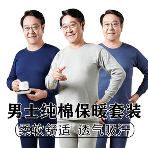 中老年人秋衣秋裤女套装全纯棉春秋薄款老人保暖内衣男...