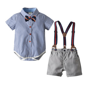 ins热卖夏季新款婴幼儿男女宝宝英伦风棉质短袖套装...