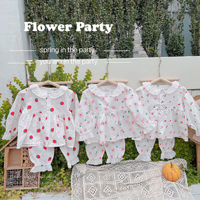女童睡衣2022春秋蕾丝花边家居服套装可爱印花上衣...