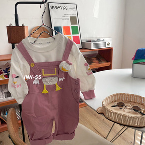 2022春装新款 ins童装男女童两色卡通背带裤+...