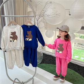 020813 春季新款男女童同款弹力毛圈圆领卫衣+...