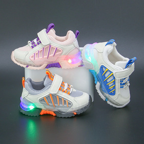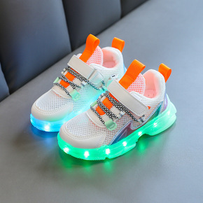 网面儿童亮灯鞋春夏USB充电发光鞋男童透气led带...