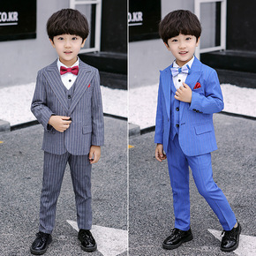 儿童西装套装三件套条纹男童小西服秋冬款小西装花童礼...