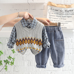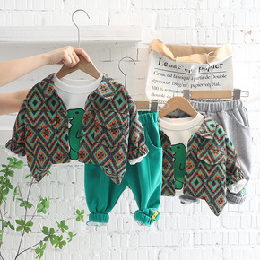 2022秋季新款韩版童装三件套男童秋装0-4岁外贸...