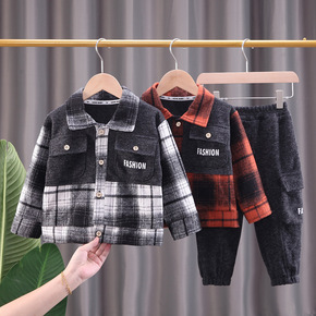 2022秋季新款韩版时尚格子男童秋装小男孩口袋开衫...