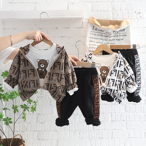 男宝宝春秋2021新款洋气套装小男童春装小熊三件套...