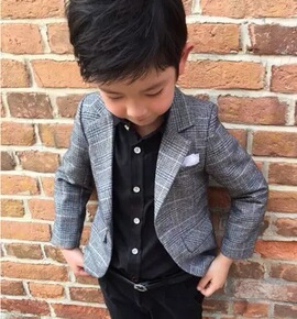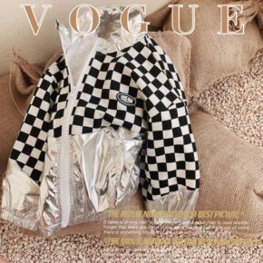 2022春新款拉链男童帅气格子棉不连帽夹克外套韩版...