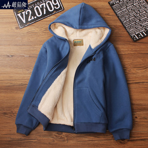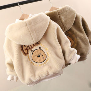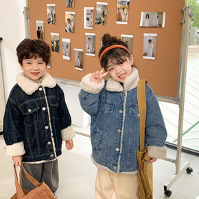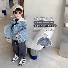 2021冬装韩版小童男童宝宝连帽加绒牛仔外套儿童冬...