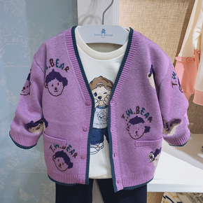 韩版洋气男童外套春秋薄款男宝宝开衫V领纯棉婴幼儿小...