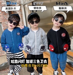 21秋冬男童新品 三色闪光拍拍灯 酷潮卡通英雄开衫...