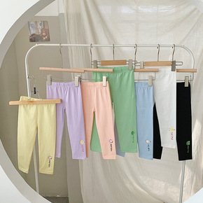 2022儿童打底裤春夏新品糖果色卡通动物印花棉潮范...