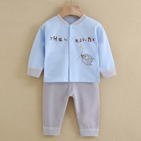 婴儿春秋季内衣套装0-1岁宝宝睡衣纯棉对扣长袖衣服...