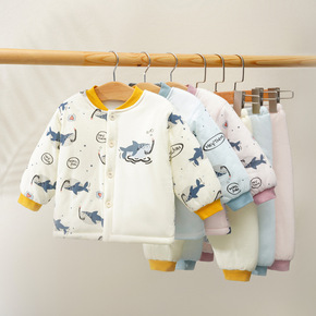 婴儿保暖内衣套装纯棉宝宝冬装加厚男女童春秋冬季夹棉...