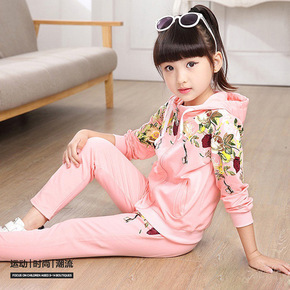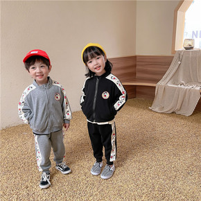 2020秋季韩版女童套装立领印花短款卫衣休闲直筒长...