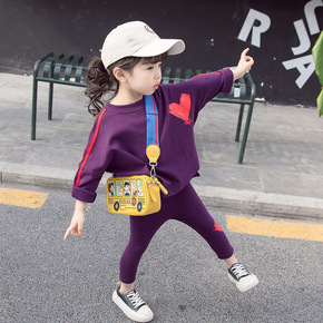 2020春秋儿童爱心宽松上衣卫衣+紧身弹力长裤两件...