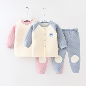婴幼儿保暖内衣套装秋冬宝宝秋衣秋裤套装新生儿三层夹...