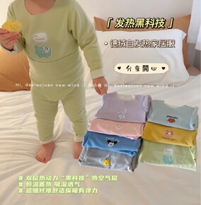 儿童套装大小卷卡通柔软发热德绒恒温家居服套装秋衣秋...