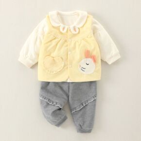 厂家批发宝宝萌兔马甲三件套婴幼儿薄棉衣新生儿潮款春...