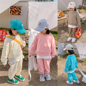 2022春秋季新款跨境童装儿童卫衣长裤两件套纯色宝...