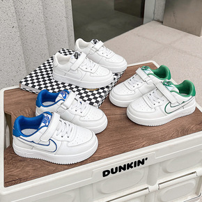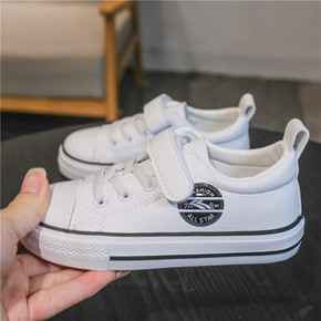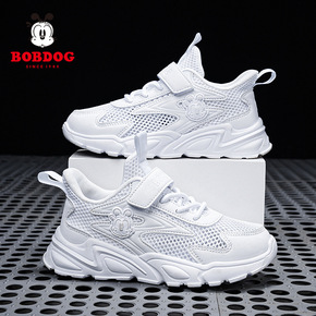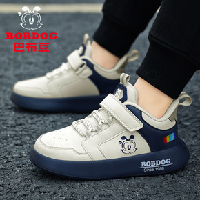 巴布豆童鞋儿童小白鞋皮面女童白色运动鞋单网男童白鞋...