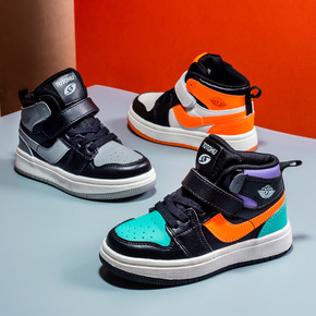 跳跳虎儿童高帮板鞋男童空军一号影子灰潮鞋2021秋...