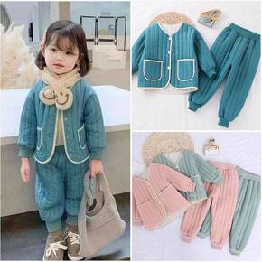 2021冬季新品童装一件代发 女童韩版绗线拼接棉衣...