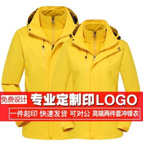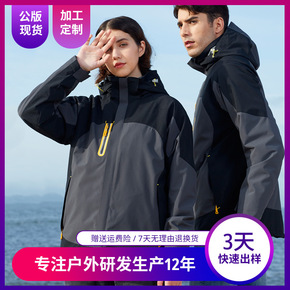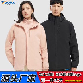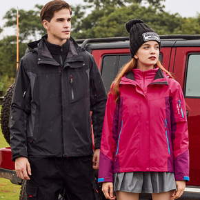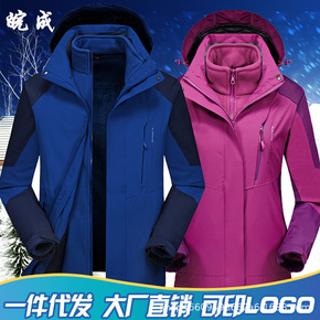 批发冬季新款两件套情侣冲锋衣三合一可拆卸登山服防寒...