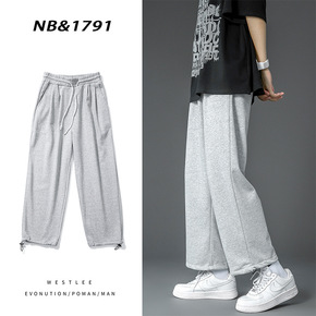 灰色卫裤男春夏季宽松直筒阔腿休闲运动裤潮流高街长裤...