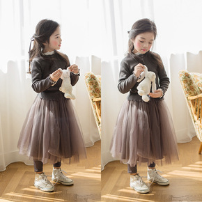 女童纱裙春秋冬加绒加厚裙裤假两件裙裤网纱半身裙打底...