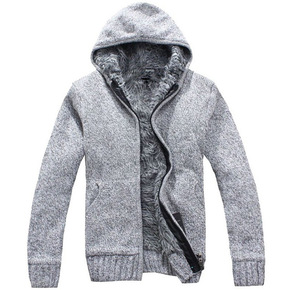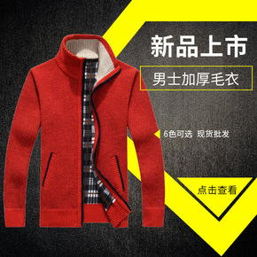 男装秋冬季开衫拉链毛衣加厚加绒立领男宽松保暖针织衫...